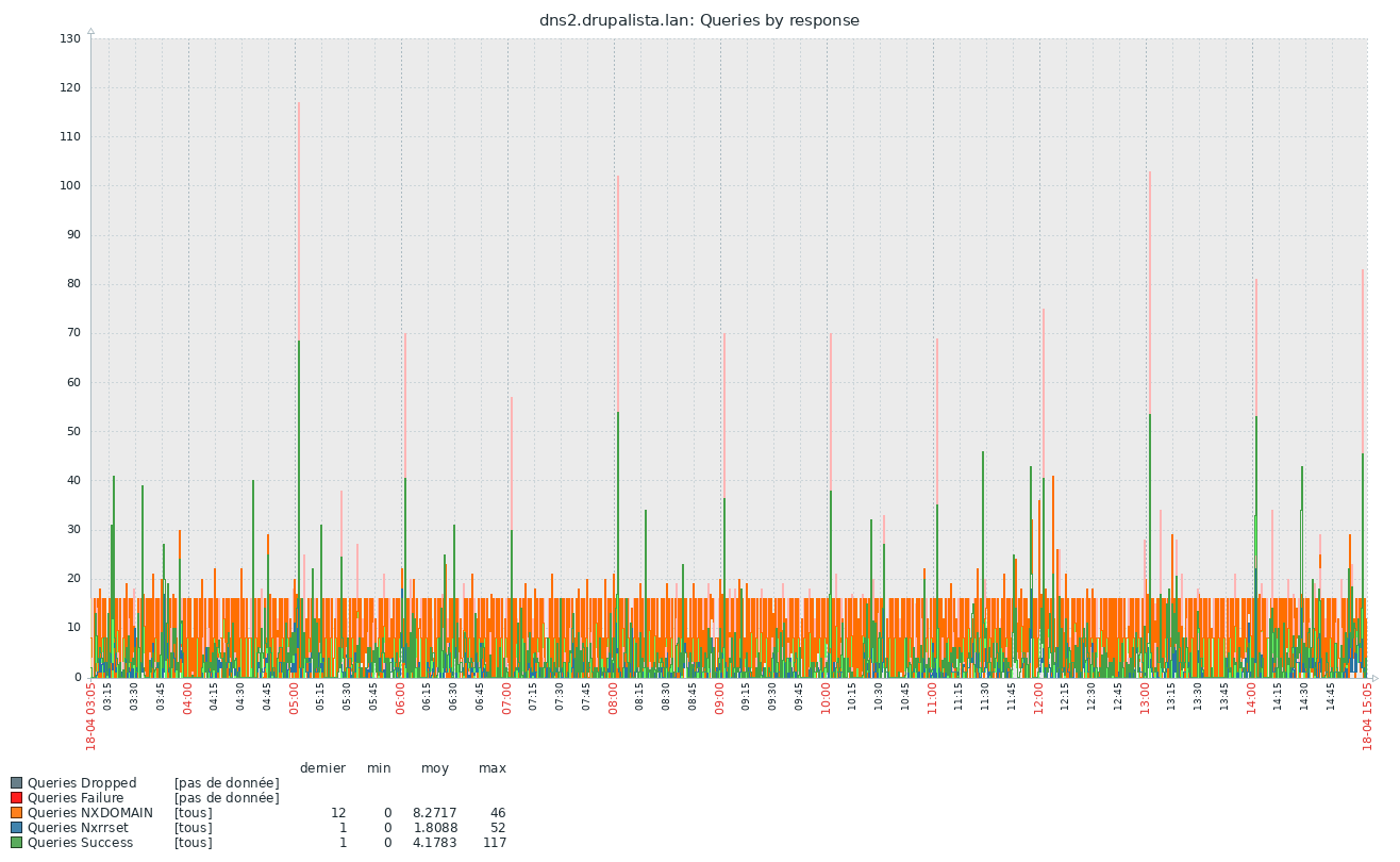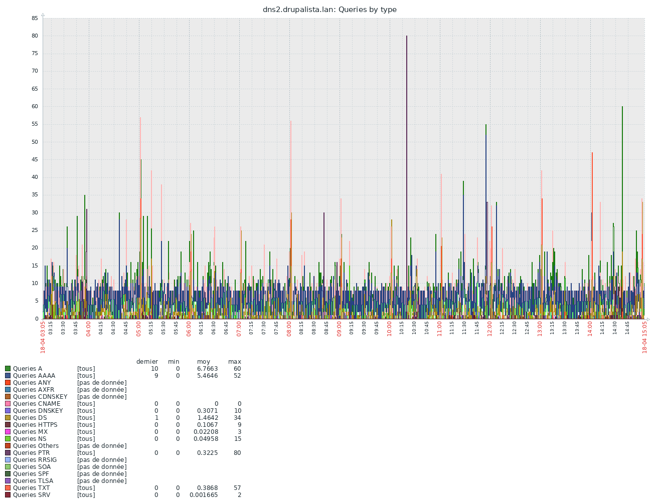 ns.drupalista.dev / 91.134.90.12Je ne conserve aucun log de vos requêtes DNS, je fais de la validation DNSSEC pour les zones l’ayant déployée afin de garantir l’authenticité des réponses fournies. Il utilise les forwarders de Stéphane Bortzmeyer, FDN et DNS4all. Un cache local des requêtes DNS est actif dans le but d'accélérer le temps de réponse.